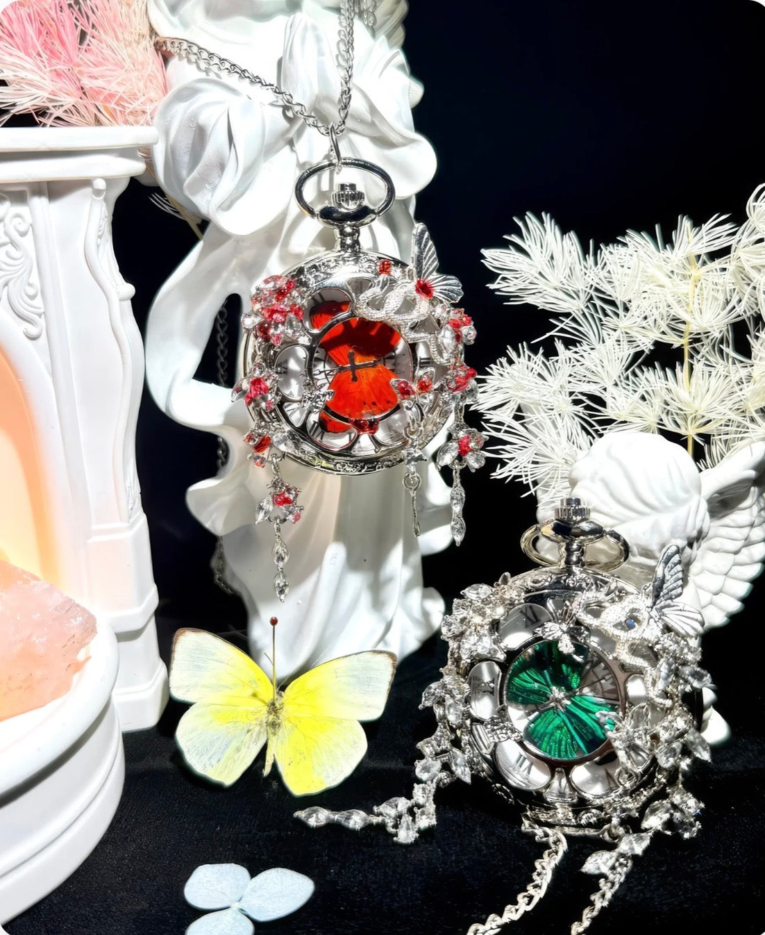 Each Butterfly Pocket Watch is assembled by hand in small batches, not produced on factory lines. The materials are chosen for weight, detail, and longevity, so it feels substantial the moment you hold it.